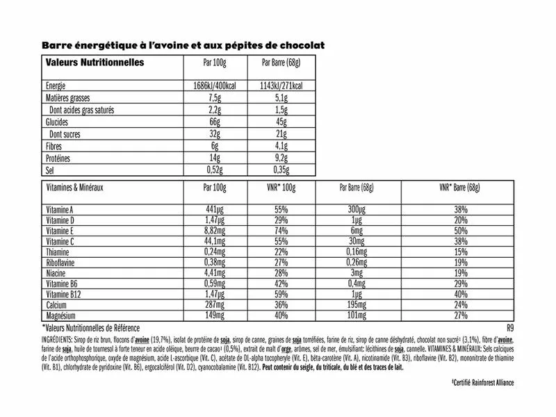 Barrita energetica de 68 gr sabor pepitas de chocolate, hecha con ingredientes sanos y buenos con la mejor materia prima y el mejor sabor. Una nutrición diferente para el deportista. Allí donde estés o hagas lo que hagas, estas barritas están hechas sólo para ti y tu aventura