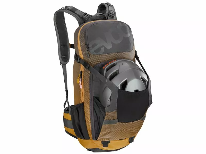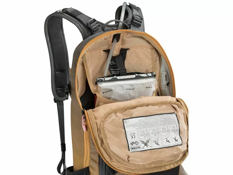 La mochila Evoc FR Enduro 16 gris y naranja 2019 es la versión más compacta de la FR Trail. Conviene perfectamente a salidas diarias y a garas de enduro. Dotado de una protección de espalda amovible certificada CE EN1621-2, la FR Enduro es compatible con depositos hasta 3 litros y tiene varios bolsillos y compartimentos.