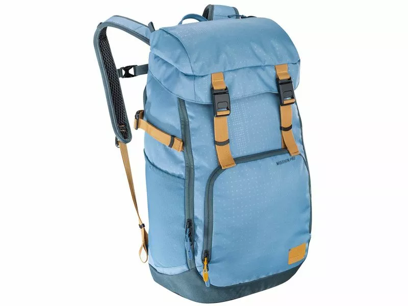 La Evoc Mission Pro es una mochila de 28L con accesso rapido al compartimento para el portatíl. Cuenta con un bolsillo delantero con cremallera y organizador y con dos otros bolsillos laterales