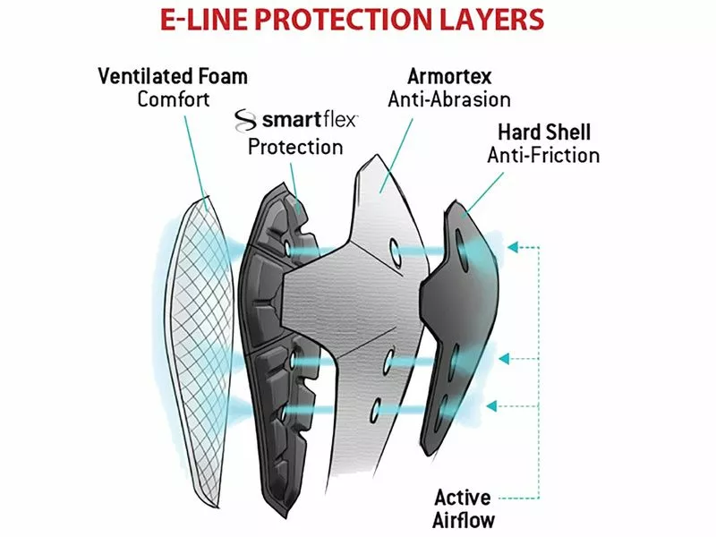 Las rodilleras G-Form E-Line estan optimizadas para la práctica de Mountain Bike agresivo y más para los aficionados del E-Bikes. Los materiales utilizados ofrecen una grande libertad de movimiento como el resto de la gama pero la diferencia es que cuenta con una carcasa externa semi rigida mucho más protectora. También cuentan con la tecnología Smarflex que absorben impactos , una cremallera que permite poner y quitarlas facilmente y correas de ajustes superior e inferior para que no se mueven durante la salida.