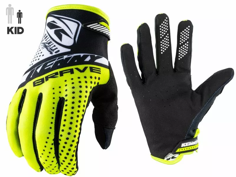 Los guantes niño Kenny Brave estan fabricados con materiales 100% sinteticos y con tejido sublimidado de alta ligereza. Cuentan con una palma en clarino muy transpirante y con un cierre de la muñeca por sistema de velcro.