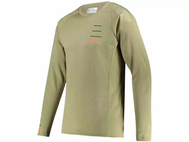 Fabricado a partir de poso de café, el Leatt MTB All Mountain 5.0 es un maillot cortaviento todas condiciones muy agradable al tocado que ofrece una excelente regulación de la temperadura. Los hombros cuentan con parches antideslizante para que la mochila siga en su sitio y los detalles reflectantes ofrecen buena visibilidad.