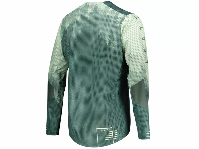 El maillot Leatt MTB Gravity 4.0 Ivy esta fabricado a partir de un tejido Mesh ligero y transpirable. Su corte ajustado y elastico permite llevar un peto protector y sus refuerzos al livel de los codos protegen de los daños exteriores. Las costuras estrechas al livel de las muñecas ofrecen buena comodidad y mantenimiento.