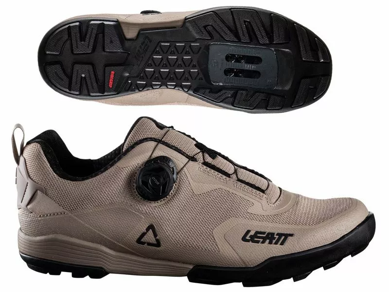 Las zapatillas Leatt 6.0 Clip se dedican a la práctica del Trail, All Mountain y Enduro. Compatible con los pedales automaticos, las 6.0 cuentan con un ajuste micrometrico ATOP muy preciso y comodo que se puede utilizar con una sola mano y que ofrece un control optimo en la bicicleta. La area SPD donde se fijan las calas ofrece un alto livel de ajustabilidad y permite posicionar el pie donde lo quiere , según el tipo de uso : adelante para más potencia y átras para más control y estabilidad. La parte superior de la zapatilla esta hecha con una capa resistente y transpirable y es perfecta un uso desde primavera hasta otoño. La suela externa RideGrip ofrece buen agarre y el taqueado permite caminar en terrenos deslizantes sin problemas. Las zapatillas 6.0 Clip cuentan también con varios refuerzos en las partes sensillas.
